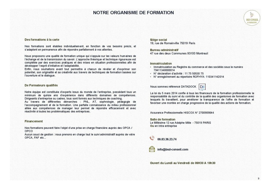 Découvrez notre organisme de formation à travers nos méthodes de travail, nos références et les avantages qui nous caractérisent. Renseignez-vous sur vos droits et services ainsi que nos prestations professionnelles qui font leurs preuves depuis de longues années.