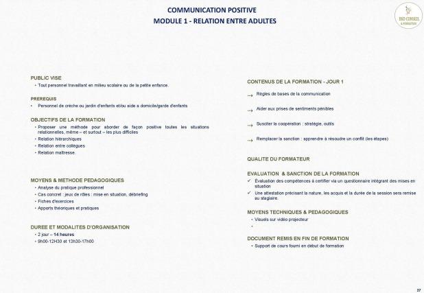 Modalité d'organisation