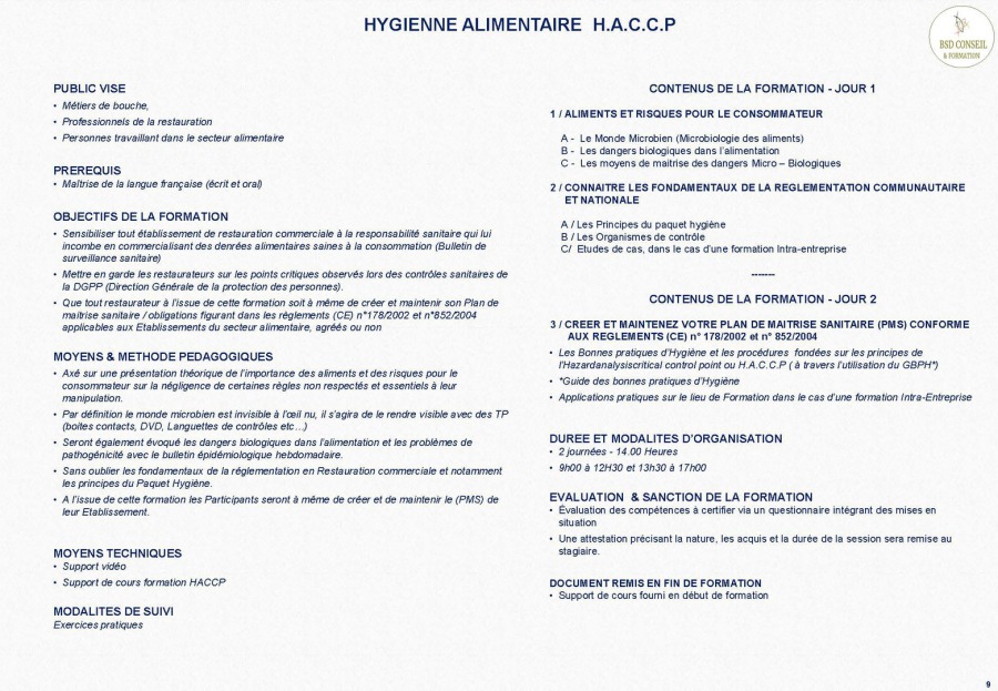 H.A.C.C.P - N° DRIAAF 11 0830 20 2020