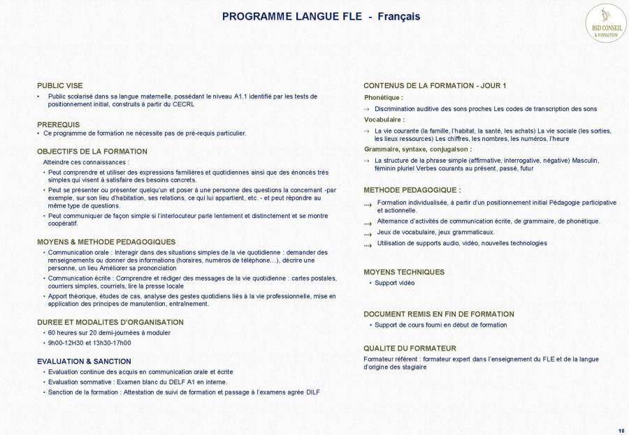 PROGRAMME LANGUE FLE - Français Langue Etrangère